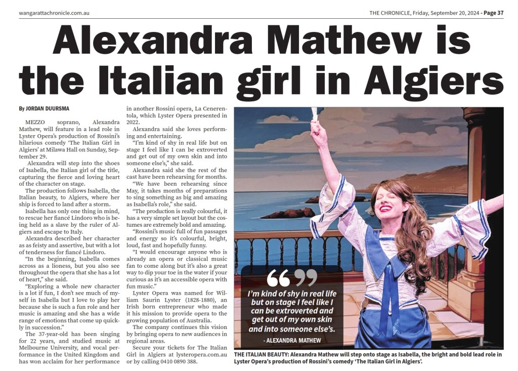 Looking forward to getting back on the road with Lyster Opera for their regional Victorian tour of Otto Nicolai’s Merry Wives of Windsor, performing the role of Frau Reich. First stop Moe, then Castlemaine, and Milawa. Follow the links for dates, times and tickets, and for more information about casting, visit the Lyster Opera website.